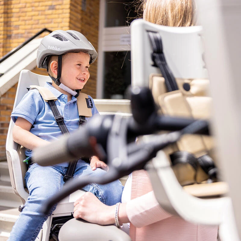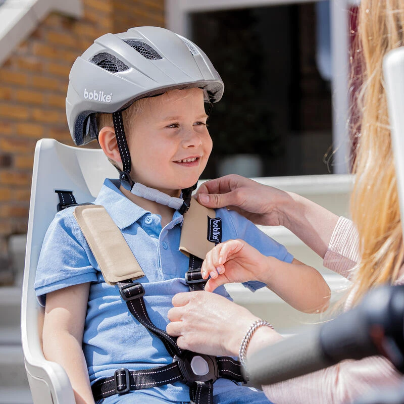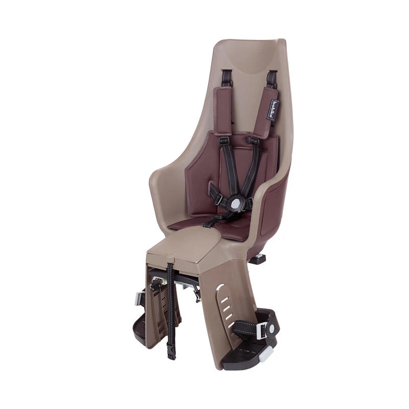 Siège pour porte-bagages arrière. Design extra enveloppante, harnais 5 points, revêtement rembourré et imperméabl, avec LED. Pour vélos de ville, trekking et VTT. De 9 mois à 6 ans, 22 kg maximum.