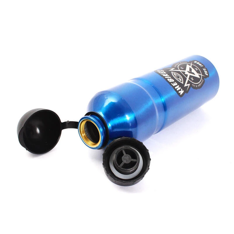 Gourde de haute qualité en aluminium avec bouchon anti-poussière et joint d’étanchéité.