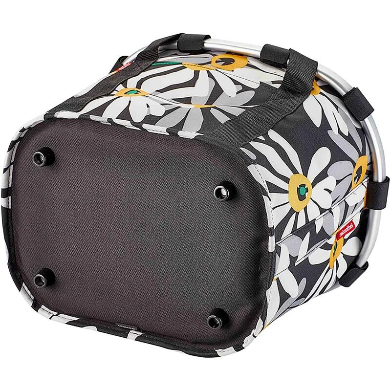 Un sac textile moderne, en polyester résistant, de Reisenthel, avec un système d’attache Klickfix sur le cadre en aluminium caractéristique. Même sans vélo, le Bike Basket brille en ville et fait de
