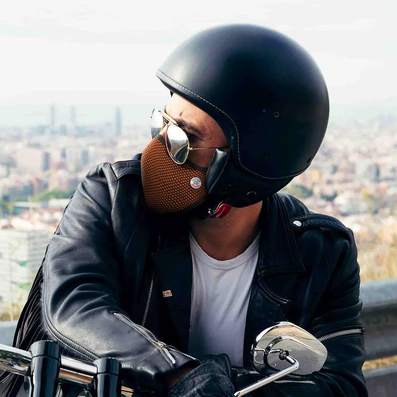 Masque antipollution Frogmask pour cyclistes et motards fabriqué en France avec filtres FFP2 interchangeables. 3 tailles M, L et XL pour une filtration optimale jusqu’à 0,4µm. Livraison gratuite.