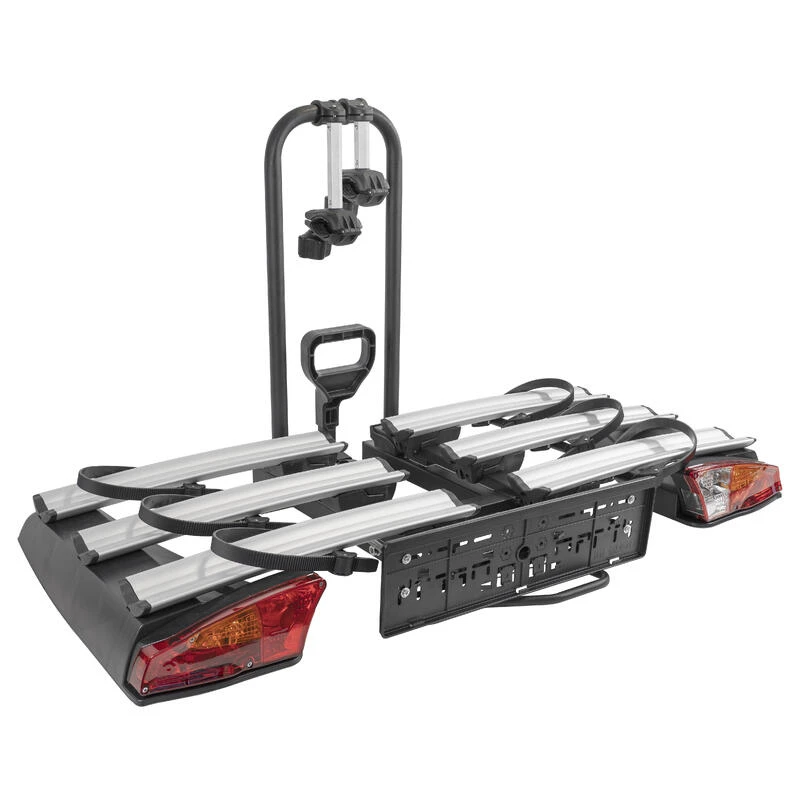 Conçu pour transporter jusqu’à 3 vélos sur la boule d’attelage de la voiture. Ce porte-vélos est compatible pour les vélos électriques. Porte-vélos 13 broches.En basculant le porte-vélos, vous pouvez accéder au coffre, verrouillable sur la rotule et les cadres de vélos, repliable, 60 kg de charge maximum , 30 par vélos (limité à 2 vélos de 30kg max)