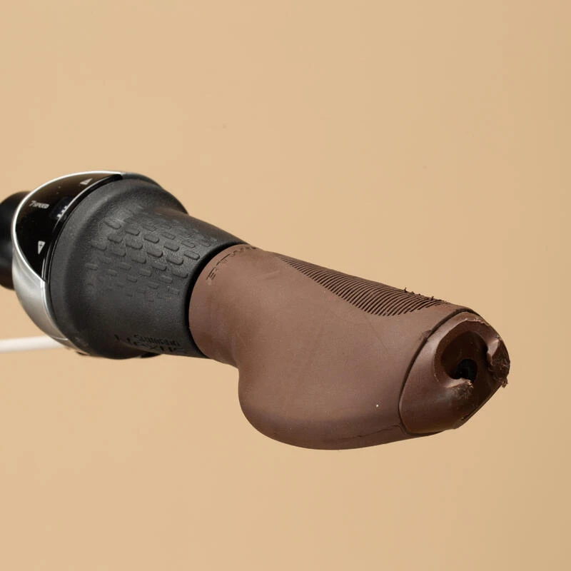 Grips ergonomiques pour plus de confort de position lors d’une utilisation régulière du vélo, équipés d’inserts pour y glisser des VIOO clips pour plus de visibilité latérale.
